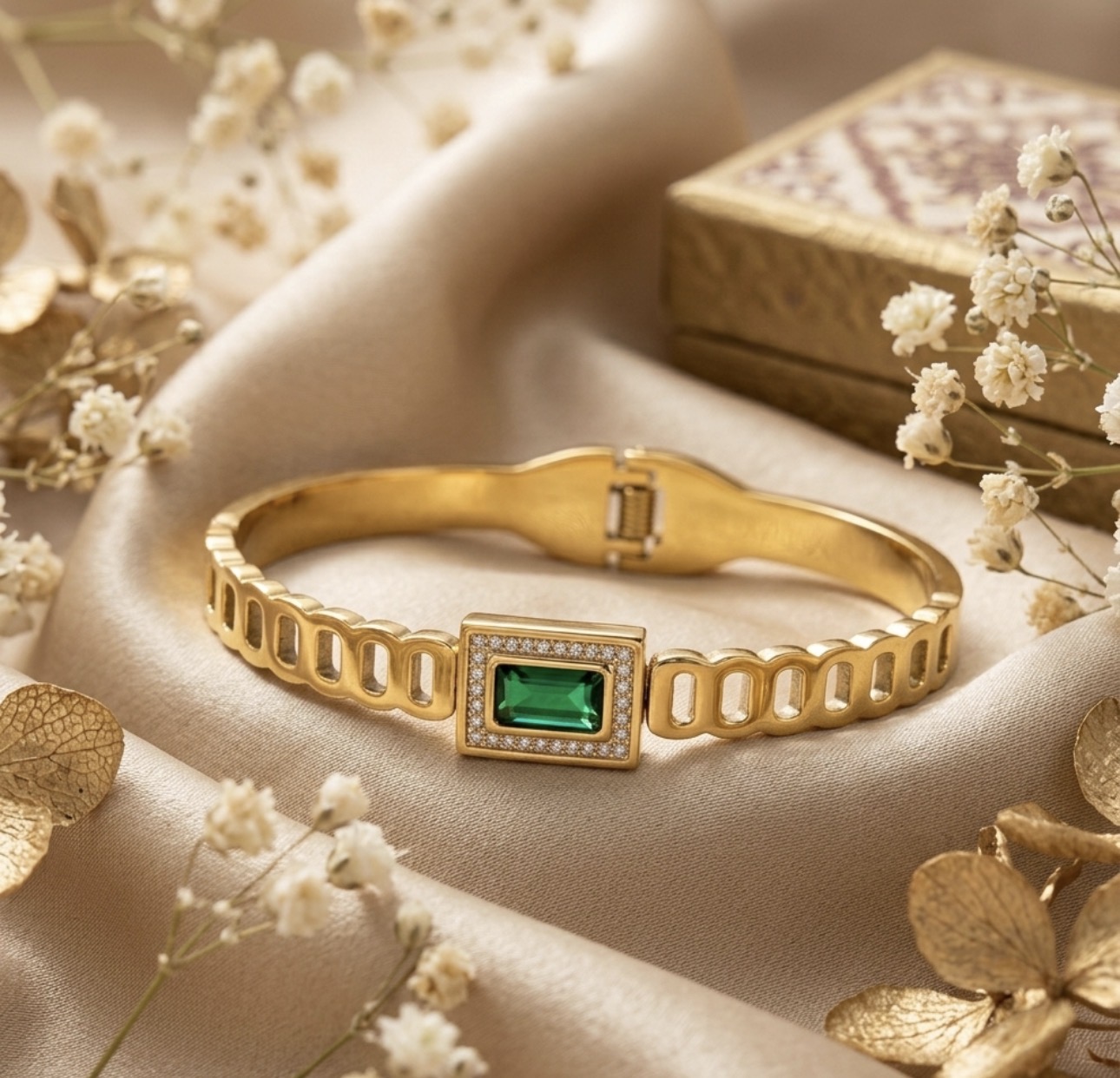 Emerald radiance Bracelet, designed with a stunning blend of luxury and modern style.