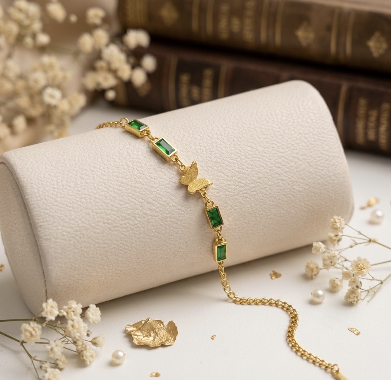 Emerald stone butterfly Bracelet, designed with a stunning blend of luxury and modern style.