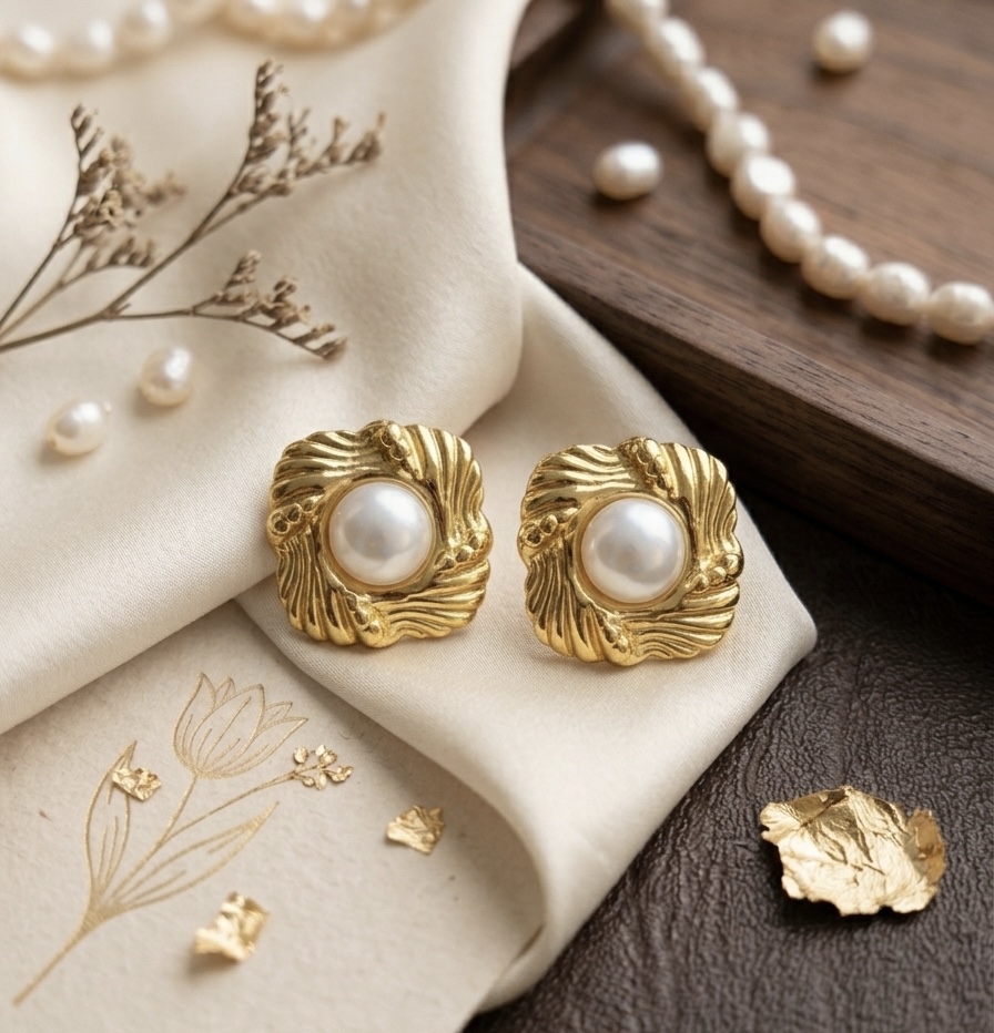Swirl pearl studs
